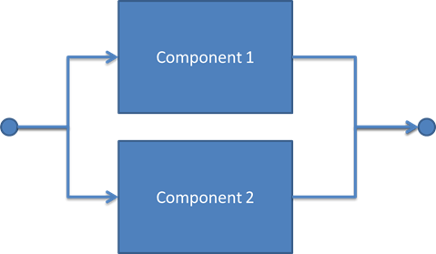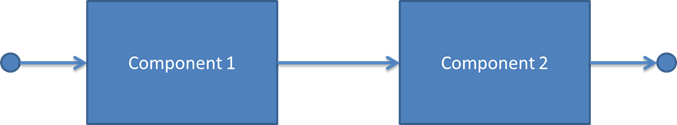 Let us now consider what happens to the uncertainty when we combine two components in series as in this reliability block diagram: