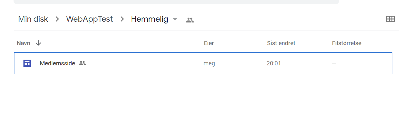 This one is published only to “specific persons”. These people will need to have Google accounts to access the membership site. Now, we can add new users by using the sharing functions in Google Drive, but we want it to be a bit more automated. This is the reason we put the site in its own folder.