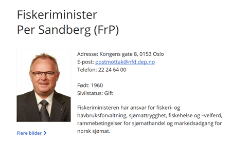 This is a presentation of Sandberg taken from the web page of the Ministry of Trade, Industry and Fisheries (https://www.regjeringen.no/no/dep/nfd/organisation/y-per-sandberg/id2467677/). Note that his marital status is “married” – but he separated from his wife in May 2018. Sandberg is a vocal figure in Norwegian politics. He has been known to be against immigration and a supporter of strict immigration laws. He has repeatedly been accused of racism, especially by the opposition. He has long held top positions in the Progress Party, which has been a part of a coalition cabinet together with the conservatives (Høyre), and more recently also with the moderately liberalist party “Venstre” (meaning left but it is not a socialist party). Sandberg is known for multiple controversies, summarized on this Wikipedia page: https://en.wikipedia.org/wiki/Per_Sandberg#Controversies. This involves addressing the parliament after having too much to drink, losing his driver’s license due to speeding and finally he was also convicted for violence against an asylum seeker in 1997.